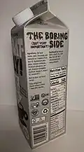 Later that month, Oatly launched its first Europe-wide advertising campaign[47][48] called "Are You Stupid?",[48][49] showing results from focus group testing,[47] showing people recognising which products do and do not contain dairy, irrespective of packaging,[47][49] and directing viewers to a petition against "Amendment 171",[49] supported by the European Dairy Association,[47][48][50] which seeks to ban non-dairy products from using "dairy-based descriptors" such as "dairy", "creamy", "yoghurt-style dessert" or "does not contain milk"[50] and could be interpreted to ban "packaging designs that call to mind dairy products, such as yoghurt pots or milk cartons"[48][50] and ban climate impact comparisons.[48][50] Campaigners — and one focus group member — argued that Amendment 171 would make it harder for the EU to meet its goal of increasing plant-based food consumption.[47][51] Amendment 171 was approved by majority vote in the European Parliament in October 2020 and went into trilogue negotiations in late January 2021.[50] On 25 May 2021 the EU withdrew Amendment 171, thus allowing plant-based dairy companies to use words like "buttery" or "creamy" to describe their products.[52]