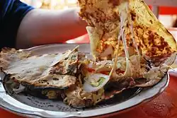 Another distinctive ingredient is Oaxaca cheese, also called quesillo, used to make empanadas, tortas, and tlayudas.[9]