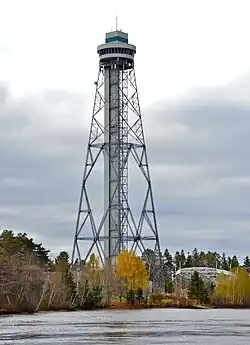 - A science centre, which includes a 115 m (377 ft) high observation tower and features a multimedia show as well as a permanent interactive exhibit. The lattice tower consists of a dismantled electricity pylon used for a temporary power line crossing of Saint Lawrence River between Grondines and Lotbinière, during the construction of the tunnel used to ultimately carry the Quebec - New England Transmission line. [1]