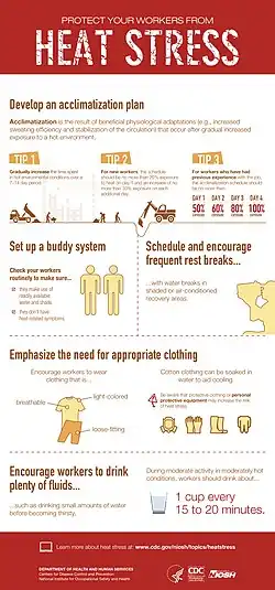 - ^ a b c d e f "Heat Stress Acclimatization | NIOSH | CDC". www.cdc.gov. 2020-02-20. Retrieved 2020-11-03.