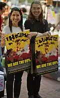 On October 15, 2011, thousands participated in a march from Justin Herman Plaza to the San Francisco City Hall.[17] Dubbed the "Global Day of Action,"[18] #15october,[19] "Occupy Earth,"[20] and now known as the 15 October 2011 global protests, it was a broad coordination of people-to-people diplomacy between online activists around the world, including many from Occupy San Francisco.[21]