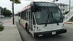 Ocean City Transportation operates two regular bus routes serving Ocean City, the Coastal Highway Beach Bus and the West Ocean City Park-N-Ride Beach Bus, along with the Express Beach Bus for special events. The Coastal Highway Beach Bus runs the entire length of the city 24 hours a day, 7 days a week on a year-round basis. The bus begins at the South Division Street Transit Center near the Ocean City Inlet and follows Baltimore Avenue northbound and Philadelphia Avenue southbound through downtown Ocean City to 15th Street. From here, the Beach Bus follows Philadelphia Avenue north to 33rd Street and continues north along Coastal Highway to 145th Street near the Delaware border, reaching its northern terminus at the 144th Street Transit Center.[1][2] During the summer season, the city hires additional operators for the highest periods of ridership. These seasonal bus drivers are frequently retirees from other transit authorities as well as school bus drivers across the state of Maryland who are off during the summer season while schools are not in session.
