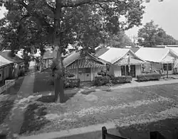 From May to September of each year, 114 tents are erected around the Great Auditorium.[45] These tents form "Tent City", a tradition of the Camp Meeting Association that dates back to 1869. Each tent is connected to a shed containing a kitchen and bathroom; the sheds are also used to store the tents during the winter. Tents are in such demand that there is a waiting list of over ten years for summer rentals.[16] Rent runs from $4,000 to $6,000 per summer. All prospective tent inhabitants are interviewed. Subletting of tents is not allowed; dogs, cats, and barbecuing are also prohibited. Tent inhabitants do not have to be Methodist, but they do have to support the association's spiritual missions.[15][46]