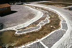 According to a 13-year agreement now in force, the Upper Ocoee, below Dam #3 and flowing past the Whitewater Center, has mid-day water 34 days a year, on summer weekends.[16] The Middle Ocoee, below Dam #2, has water 106 days a year and contains 26 Adventure Class rapids.[17] On the days when the Upper Ocoee is also watered, the Middle Ocoee has water into the early evening (its own release plus the extra water from upstream).[18] Most rafting activity takes place on the Middle Ocoee, which has a 1% slope of 50 ft/mile (9.5 m/km). Rafting down the Upper Ocoee, and through the steeper Olympic course, is offered as a more challenging alternative.