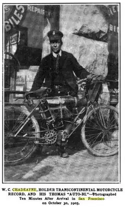 - ^ "Chadeayne reaches 'Frisco", The Bicycling World and Motorcycle Review, November 4, 1905, pp. 107-109