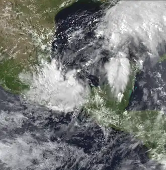 ![]() Satellite image of Tropical Depression Eleven near eastern Mexico | |