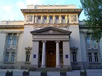 The Odesa National Scientific Library (Ukrainian: Одеська національна наукова бібліотека) is a public library established in 1829 in Odesa, Ukraine.[1] The library moved to its current location in 1907, into a new building designed by architect Fyodor Nesturkh in neo-Greek style.[1] The library has been renamed numerous times throughout history, arriving to its current name in 2015. The library has a collection of over 5 million books, including 200,000 rare editions.[2]