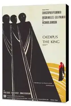 Oedipus the King is a 1968 British film adaptation of the Sophoclean tragedy Oedipus Rex, directed and co-written by Philip Saville. It stars Christopher Plummer as the title character, Orson Welles as Tiresias, Lilli Palmer as Jocasta, Richard Johnson as Creon and Donald Sutherland as the leading member of the Chorus, though the latter's voice was dubbed by Valentine Dyall.[2][3] Saville's first theatrical film effort, the film remained highly theatrical in nature, and is known for its intensive dialogue typical of an ancient play.[4][5]