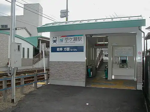 Ogase Station (苧ヶ瀬駅, Ogase-eki) is a railway station located in the city of Kakamigahara, Gifu Prefecture, Japan, operated by the private railway operator Meitetsu.
