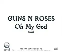 "Oh My God" is a song by Guns N' Roses released in 1999 on the soundtrack to the film End of Days. The song was sent to radio stations in November 1999 as a promo for the soundtrack and the band. Despite being the band's first recorded release in almost five years, it was never issued as a stand-alone single for public retail. The song was written as the band was recording music for Chinese Democracy.