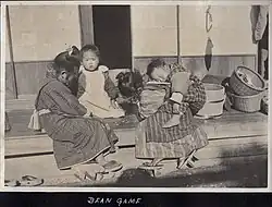 During the Edo period, ohajiki became popular as an indoor game for girls, and was contrasted against more "aggressive" games for boys.[1]