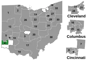 Ohio's 4th senatorial district has been based in southwestern Ohio and now consists of almost all of Butler County. It encompasses Ohio House of Representatives districts 51, 52 and 53. It has a Cook PVI of R+14. Its current Ohio Senator is Republican George Lang.