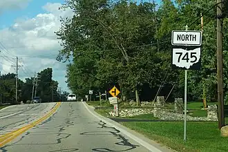 State Route 745 (SR 745) is a state route in central Ohio that runs in a north-northwesterly direction along the west bank of the Scioto River. Its southern terminus is at the concurrency of U.S. Route 33 (US 33) and SR 161 in Dublin, and it runs for approximately ten miles (16 km) to Concord Township in Delaware County, where it arrives at its northern terminus at the concurrency of US 42 and SR 257. SR 745 was designated in 1937, and its routing has not changed since.
