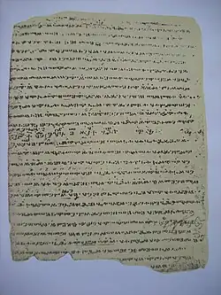 The Ohrid Gospel or Ohrid Glagolitic fragments (Latin: Evangelium Achridanum; Russian: Охридские глаголические листки, Okhridskiye glagolicheskiye listki) is a Glagolitic manuscript from the 10th century AD.[1] It contains text from the Gospel of Luke 24 and parts of the Gospel of John,[2] written on 20 leaves of parchment, each about 17 cm × 20 cm (6.7 in × 7.9 in) each.[3]