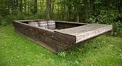 The majority of the oil wells in the vicinity of the Oil Creek valley tapped into a sandstone formation known as the Venango Third sand.[7] The Venango Third contained large volumes of oil under high pressure at only 450 to 550 feet (140 to 170 m) below ground level.[7] Other oil-producing formations in the area were "the Venango First and Second [sands], the latter often prevailing after the Third sand was lost."[7]
