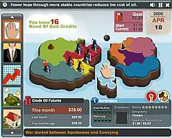 Oil God is a 2006 newsgame created by Persuasive Games dealing with the relationship between the gas prices at the pump and the way the oil industry works.[1][2] It has been likened to a simpler version of the strategy game Black & White.[3] The lead designer was Ian Bogost.[4] The reception was mediocre; James Ransom-Wiley of Engadget called it "a crude experience, pumped with superficial cynicism [that] fails to deliver "news" about the real world oil biz."[4]