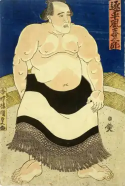 Oitekaze's interest in sumo began when the master of the Oitekaze stable, the former makushita Wadagahara Kitarō, visited his hometown during a tour, encouraging him to become a wrestler when he was just 9 years old.[2] He began his career by being recruited directly into Oitekaze stable in October 1817. He first wrestled under the shikona, or ring name, Kuroyanagi Matsujirō (黒柳 松治郎). In October 1824, he was promoted to sumo's highest division, makuuchi. In his first tournament in that division he defeated ōzeki Kashiwado during the last three matches of the tournament and received the bow strings as a reward because he fought in the penultimate bout. In 1831, he became an elder under the name Oitekaze Kitarō (追手風 喜太郎), to inherite the stable after the death of his master in 1829. He however continued to wrestle under a two-license system.