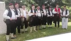 Many folklore groups have been performing to keep Ojkanje singing alive.[16] A prominent group, "KUD Promina" from Oklaj was formed by five locals from the area to preserve and perform their region's local Ojkanje singing,[17] and their success insured them an appearance in the official video on UNESCO's website. Other cultural groups (KUDs) noted by UNESCO that are active in preserving Ojkanje are "Sveta Magareta" from Velika Jelsa near Karlovac, "Gacka" from Ličko Lešće, "Radovin" from Radovin, "Sveti Nikola Tavelic" from Lišane Ostrovičke, and notable people from Srijane (near Trilj) and Kokorici (near Vrgorac). Croatian public television has aired numerous programs on ojkanje groups and reviving the custom among young people.[18][19] Examples of other groups include "KUD Petrova Gora - Kordun" Beograd,[20] and "KUD Kordun - Inđija",[21] formed by ethnic Serbs from the Kordun region of Croatia, but now perform throughout Serbia. There are numerous festivals and cultural events throughout the region that display Ojkanje singing to the public.[22][23] The village of Prigrevica in Sombor, Serbia, and other places in Vojvodina settled by Military Frontiersmen has the musical tradition of Ojkanje.