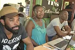 L-R: Gabriel Afolayan, Oge Obasi, and C.J. "Fiery" Obasi, at the audition for Ojuju in Surulere