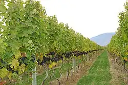 The first vineyard planted in the Okanagan was at the Oblate Mission in Kelowna in 1859, planted by French Catholic priest Charles Pandosy and was solely intended for the production of sacramental wine for the celebration of the Eucharist. Several small vineyards, planted mostly with Vitis labrusca operated until prohibition in the United States in the 1920s encouraged the uprooting and replanting with other agricultural crops.[3] For most of the 20th century after prohibition ended in 1933, what limited wine production that took place in the Okanagan was mostly fruit wines made from berries, apples, cherries or even table grapes. One winery, Calona Wines founded in 1932, still remains from that period and was the first commercial winery in British Columbia and remains the oldest continuously running winery in the province.[6] Eventually the use of French-American hybrid grapes, such as Marechal Foch and Vidal blanc took hold, led by the Stewarts of Quails' Gate Estate Winery.[8]