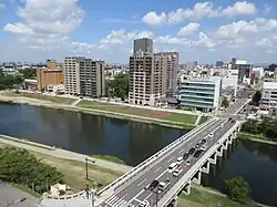 Okazaki (岡崎市, Okazaki-shi; Japanese pronunciation: [o.kaꜜ.(d)za.kʲi, -ka.(d)za.kʲi̥ꜜ.ɕi, -(d)zaꜜ.kʲi̥.ɕi], locally [o.ka.(d)za.kʲi][1][2]) is a city located in Aichi Prefecture, Japan. As of 1 October 2019, the city had an estimated population of 386,999 in 164,087 households,[3] and a population density of 999 persons per km2. The total area of the city was 387.20 km2 (149.50 sq mi).
