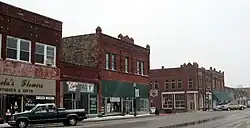 The St. Louis and San Francisco Railway built a north–south line through this area during 1901–03. The Fort Smith and Western Railroad constructed an east–west line in 1903.[3]