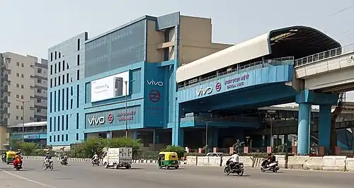 Okhla NSIC elevated metro station situated on the Magenta Line of Delhi Metro.