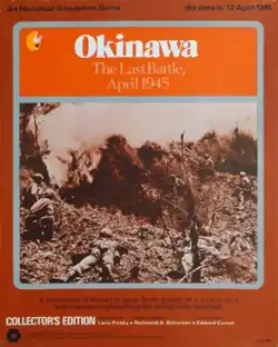 Okinawa: The Last Battle, April 1945 is a board wargame published by Simulations Publications Inc. (SPI) in 1975 that simulates the Battle of Okinawa during World War II. Okinawa was originally published as one of four games in the popular collection Island War: Four Pacific Battles, but was also released as an individual game.