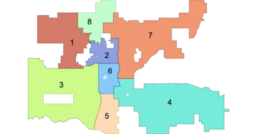 | Ward | Name | Party (officially nonpartisan) | Term start | Location | References |