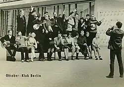 Oktoberklub (English: October Club), initially known as the Hootenanny-Klub Berlin, was a political music group from the German Democratic Republic (GDR). The musical style of the group was a mixture of folk, chanson and rock music. Founded in 1966, the group disbanded in 1990. Occasional performances followed in 2002 and 2007.