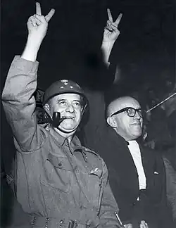 Mourão judged that there was no real risk of impeding Juscelino Kubitschek's inauguration, and therefore Lott's countercoup was unnecessary to guarantee it.[42] As he had good relations with the new president, who was also from Diamantina, Mourão was promoted to brigadier general on 25 March 1956, in one of the two vacancies freely chosen by the president.[43] As a general, Mourão commanded the Divisional Infantry of the 4th Infantry Division, in Belo Horizonte, from 1956 to 1957 and headed the Directorate of Social Assistance, in Rio de Janeiro, between 1957 and 1961.[29]