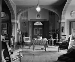 Church continuously improved the property, plotting scenic carriage roads and adding a studio wing to the house over the period 1888–1891. Although the Churches often wintered in warmer climates, and spent time in New York City, Olana was their main residence.[8] After Isabel Church's death in 1899 and Frederic Church's death in 1900, the property was inherited by their son Louis Church, who married Sarah Baker Good (known as Sally), daughter of Pennsylvania Industrialist George S. Good in 1901. Louis and Sally Church maintained the property largely as it had been left to them, adding additional acreage for farming. Upon Sally Church's death in 1964, a nephew inherited the estate and intended to sell it to developers at a public auction. After a two-year anti-development campaign led by scholar David C. Huntington (1922–1990), which culminated in a cover story on Olana in Life magazine,[12] New York State purchased the property in 1966 and it was opened to the public.[8]