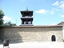 Revolutionary Goce Delčev is buried in a white stone sarcophagus in the church's courtyard.[32]