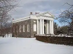 The Old Cadet Chapel at the United States Military Academy is a church and location of funeral and memorial services. It is the oldest chapel at West Point, having originally been built in 1836.[1] The chapel was originally located in the cadet area near present-day Bartlett Hall, but was disassembled brick-by-brick and moved to the West Point Cemetery when the current Cadet Chapel opened in 1910. Lutheran services are held at the old chapel on Sunday mornings during the school year.