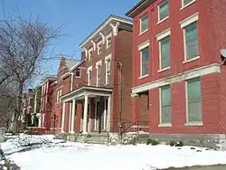 Old Louisville is a historic district and neighborhood in central Louisville, Kentucky, United States. It is the third largest such district in the United States, and the largest preservation district featuring almost entirely Victorian architecture.[2][3] It is also unique in that a majority of its structures are made of brick, and the neighborhood contains the highest concentration of residential homes with stained glass windows in the U.S.[3] Many of the buildings are in the Victorian era styles of Romanesque Revival, Queen Anne, or Italianate, and many blocks have had few or no buildings razed. There are also several 20th-century buildings from 15 to 20 stories.