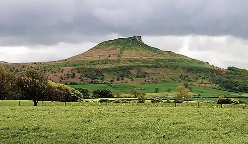 Roseberry Topping in Yorkshire, Northern England. After Scandinavian settlement in the area, the site became known by the Old Norse name Óðinsberg, meaning 'Mountain of Óðinn'