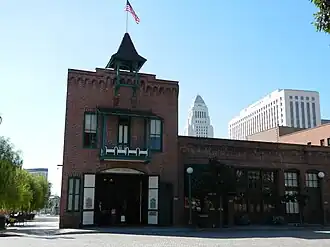Old Plaza Firehouse with Los Angeles City Hall in the background. | |