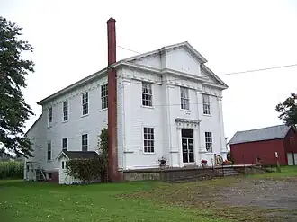 Old Sardinia Town Hall, also known as the Sardinia Meeting House and First Baptist Church of Sardinia, is a historic town hall located at Sardinia in Erie County, New York. It was built between 1828 and 1830, and is a two-story, transitional Federal / Greek Revival style frame building. It originally housed a Baptist church congregation. The building was renovated in the early-1930s and housed a local community hall until deeded to the town of Sardinia in 1945 for use as a town hall. It is now home to the Sardinia Historical Society and Museum.[2]