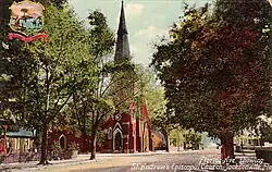 St. Andrew's Episcopal Church was designed by architect Robert S. Schuyler in the Gothic Revival style. Schuyler also designed St. Peter's Church in Fernandina, built in 1881, as well as chapels in Waldo, Fairbanks, Pablo Beach, and Lake Santa Fe. St. Andrew's was built in 1887 on a single level using brick masonry and contained a massive front corner tower with louvered belfry and steep spire roof. It stood at 317 Florida Avenue, now 317 A. Philip Randolph Boulevard.[3] The architecture was praised in the 1889 edition of King's Handbook of Notable Episcopal Churches in the United States: