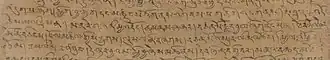 The Old Tibetan Chronicle is a composite text of various lists, narratives and bardic songs arranged to form a single account of the reigns of the Tibetan emperors. As the list of the Tibetan emperors found in the narrative ends with U Dumten ('U'i dum brtan), later known as Langdarma, the Chronicle must have been compiled during or soon after the reign of this emperor, that is, in the 840s.[5] Geza Uray has argued that this composition was made in Dunhuang itself rather than Central Tibet.[6]