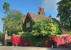 The Old Vicarage in the Cambridgeshire village of Grantchester is a house associated with the poet Rupert Brooke, who lived nearby and in 1912 referenced it in an eponymous poem – "The Old Vicarage, Grantchester".[1] The house is next door to The Orchard tea garden, also part of the poem. A portrait statue of Brooke by Paul Day stands in the front garden.[2]