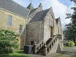 The Old West Kirk of the Church of Scotland, authorised by a 1589 Royal Charter and first opened in 1591, is noted as the first Presbyterian church built in Scotland following the Scottish Reformation, and the first approved by the Parliament of Scotland. At an early stage, east and west aisles were added as transepts, giving the church its cruciform plan.[1][2]