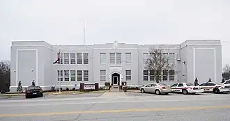 Old Woodruff High School is a historic high school building located at Woodruff, Spartanburg County, South Carolina. It was built in 1925, and is a two-story, modified "H" plan stuccoed masonry building in the Collegiate Gothic style. It consists of a three-part center section with two perpendicular wings. The building has a flat roof with parapet, Gothic arches, recessed entrances framed by pointed arches. The building housed a high school until 1953 when Woodruff High School was constructed, then used as a middle school and later an elementary school. In 1978 the City of Woodruff acquired old Woodruff High School and adapted it for use as its city hall and police headquarters.[2][3]