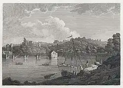 In 1810 the bridge was again declared to be "in decay" and dangerous, and local magistrates commissioned engineer John Rennie, the architect of Waterloo Bridge in London, to design a new bridge. Rennie's designs, at an estimated cost of £41,890 (equivalent to £3,750,000 in 2023),[5] were considered to be too expensive, but action was eventually taken after a ship collided with the wooden bridge in 1812, demolishing part of it and causing six deaths.[1][6] The foundation stone for the new bridge was laid on 13 April 1813.[6] In 1814 the contract to build the bridge was let to the Bridgnorth firm of Hazeldine, Rastrick & Co., at a cost of £17,850, less than half that of Rennie's estimate.[7]