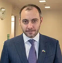 Oleksandr Mykolayovych Kubrakov (Ukrainian: Олександр Миколайович Кубраков; born 20 August 1982)[1] is a Ukrainian economist, civil servant and politician.[2] From May 2021 to June 2024, he served as Minister of Infrastructure of Ukraine.[3]