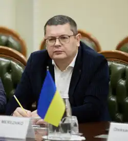 Oleksandr Oleksandrovich Merezhko (Ukrainian: Олександр Олександрович Мережко; born 14 February 1971) is a Ukrainian politician, jurist and academic. He has been a deputy of the Verkhovna Rada of Ukraine for the Servant of the People party since the 2019 election and currently serves as chair of the committee on foreign policy and interparliamentary relations.[1][2] From 2020 to 2024 he was one of Ukraine's 12 deputies in the Parliamentary Assembly of the Council of Europe, serving as vice president from 2020 to 2022.