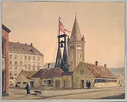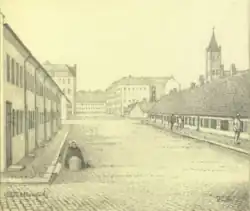 Olfert Fischers Gade traces its history back to Christian IV's foundation of Nyboder naval barracks in 1931 but different sections of it were then known under individual names. The section from Store Kongensgade was called Bryggerlængen (The Brewer Row), presumedly because a brewery was located at the site. The section from Borgergade to Adelgade was called Ulvegade (Wolf Street) and the section from Adelgade was called Balsamgade.[1] The streets in Nyboder were named after animals and plants. These two names followed Christian IV's decision to name the streets in the eastern part of Nyboder after animal species and the streets in the western part after plant species. The area was located outside the city until Copenhagen's East Rampart was moved in 1661. This had already been planned by Christian IV but had been delayed due to lack of funding.[2] Søetatens Hospital that replaced Søkvæsthuset, a naval hospital, was from 1806 located in Balsamgade. It closed in 1864. Nyboder's police station and jailhouse was located just around the corner in Adelgade. Adelgade then crossed the street a little further to the west, where Gammelvagt runs today, but the street was straightened in the 1990s.