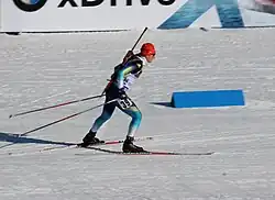 Olga Abramova (Ukrainian: Ольга Абрамова; born 15 September 1988) is a former Russian (2011-2012) and Ukrainian (2012-2022) biathlete. Having little success in the Russian team, she changed her citizenship to Ukrainian in 2012.[1] She made her World Cup debut at the 2013–14 season in Antholz, Italy and went on to become a regular member of the Ukrainian team.[2] On 10 January 2016 she failed a drug test when meldonium was found in her doping test. Meldonium became illegal to use on 1 January 2016.