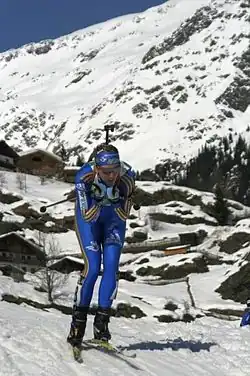 Her best ever result in the World Cup came during the 2007-08 Biathlon World Cup where, at the age of 35, she finished second in the Oberhof, Germany mass start, behind Magdalena Neuner.[4] Her best finish in the overall came a season earlier when she finished 21st.[5]