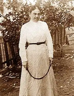 Olga Hankin née Belkind was born in the small town of Lahoysk near Minsk[2] in Belarus or Byelorussia, the oldest child of Meir and Shifra Belkind.[3] She moved to St. Petersburg as a young woman and to the Land of Israel as part of the First Aliyah in 1886. Two years later she married Yehoshua Hankin (1864–1945) in the agricultural settlement of Gedera. They moved to Jaffa, where she became known for her midwifery skills, having studied the profession in St. Petersburg; "she was most likely the first professional midwife in the country".[4] She was 13 years older than he and would become his partner in their endeavors. Ironically for a woman who brought many children into the world, her marriage with Yehoshua was childless.[5]